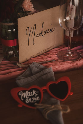 ONE OF THE MOST UNIQUE ELEMENTS TO THE WEDDING WAS THEIR PERSONALISED NAME-PLACES, WHICH WERE HEART-SHAPED SUNGLASSES WITH EVERY GUESTS NAME ON THEM. NOT ONLY DID THESE SERVE AS UNIQUE NAME-PLACES, BUT THEY DOUBLED UP AS A PARTY ACCESSORY WELL INTO THE EVENING.